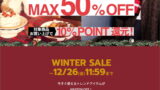 対象商品が最大50%OFFになる他、対象商品お買い上げで、10%のポイント還元をうけられます。