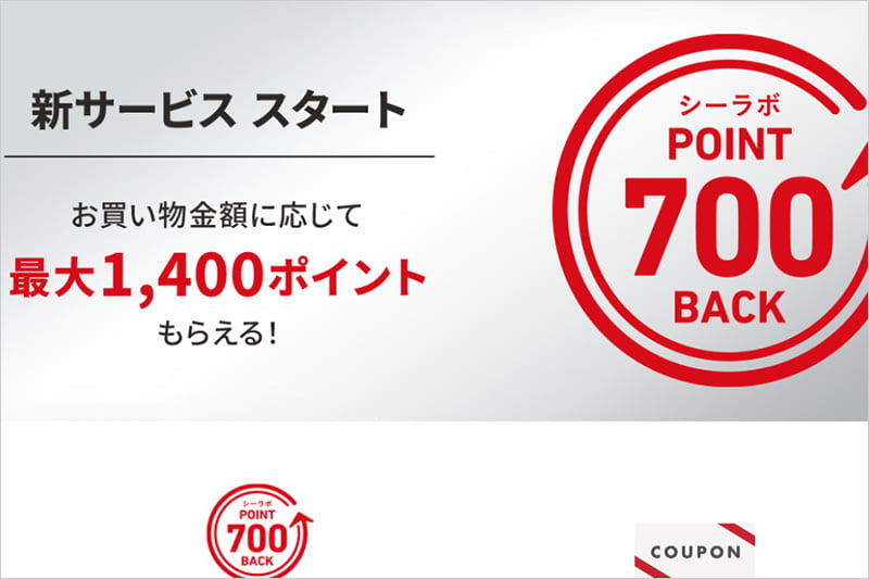 ドクターシーラボ公式通販では、通常のポイントに加えて、お買い物金額に応じて、最大1,400ポイントがもらえます。