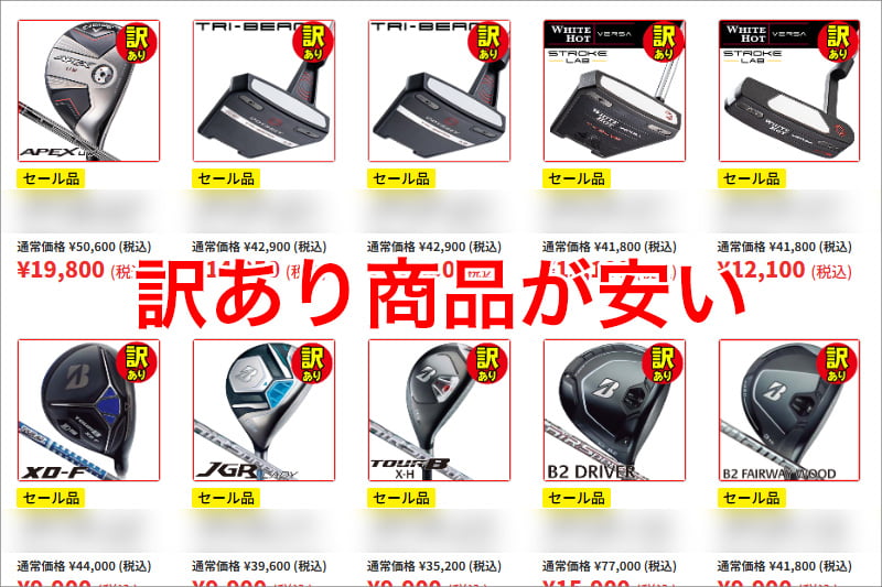 キャロウェイやブリヂストンといった有名ゴルフクラブも訳あり商品になっていることがあり、安いです。