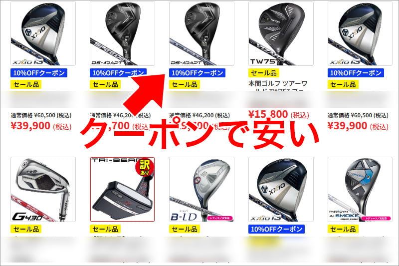 つるやゴルフの訳あり商品では、店頭展示品やシュリンクの剥がれ、小キズがある商品をセール価格で購入できます。